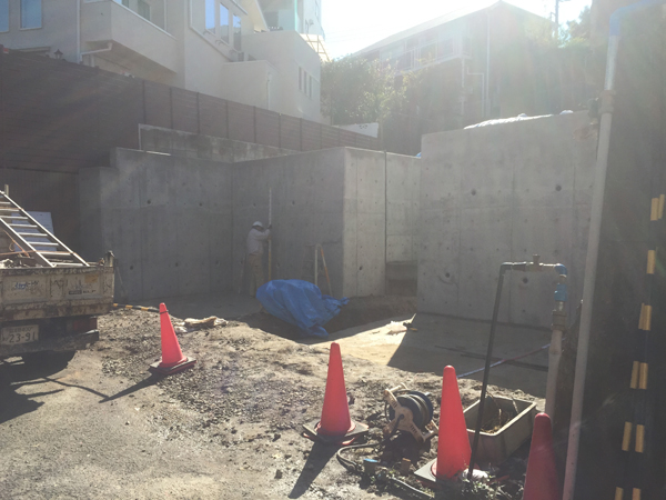 三ツ沢競技場近くの地所を擁壁ありの2宅盤で造成してほしいとの依頼から高さ3mの擁壁工事を行いました。