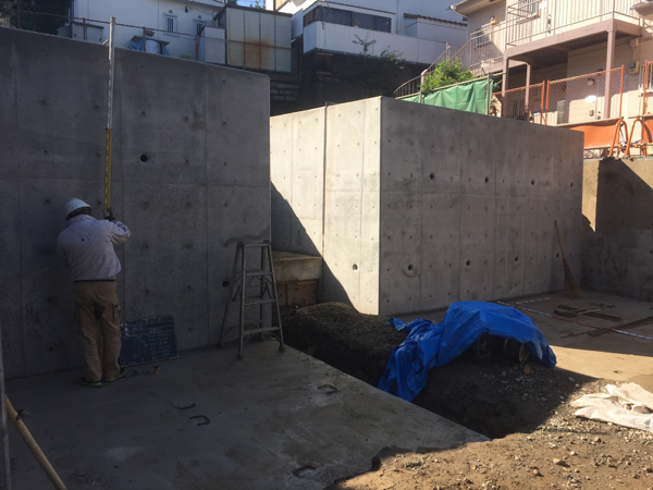 三ツ沢競技場近くの地所を擁壁ありの2宅盤で造成してほしいとの依頼から高さ3mの擁壁工事を行いました。